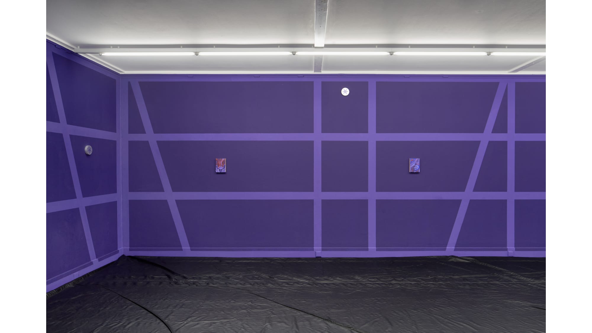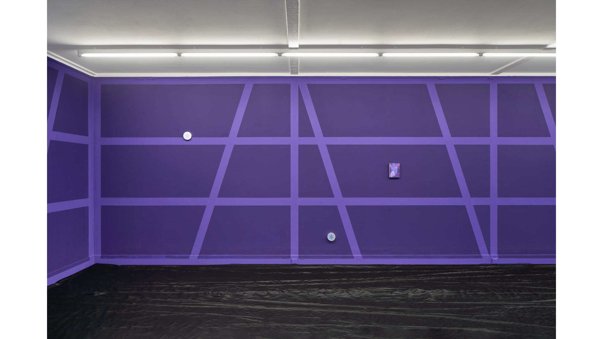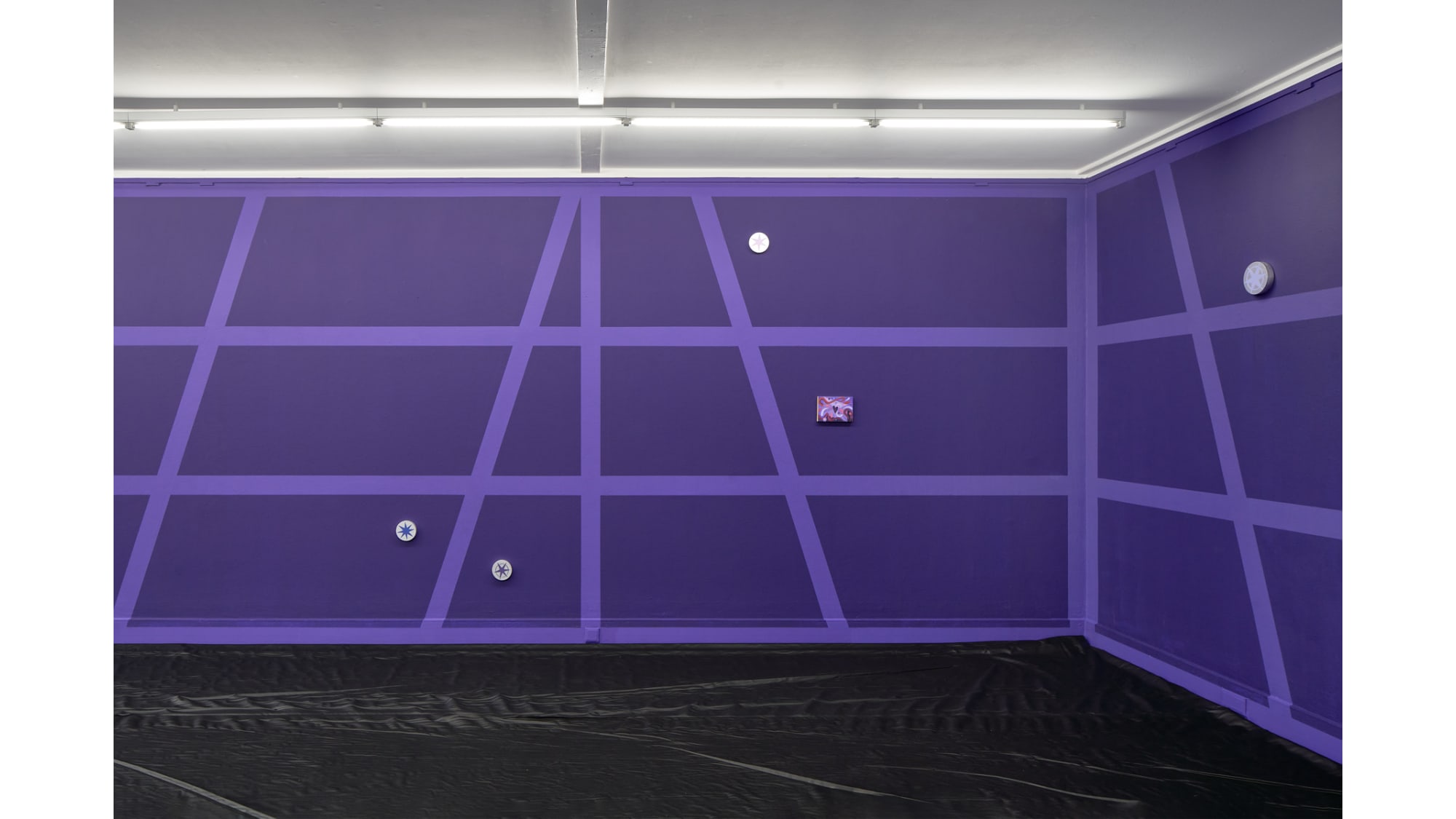 With his exhibition Star that carries your name, Gašper Kunšič gives the interior of the Kunsthalle Willingshausen the outward appearance of a half-timbered façade, through which one seems to look. The spaces between the timbers are violet, like the dark night in which the stars become visible. The German pop song Ein Stern, der deinen Namen trägt (“A star that bears your name”) celebrates these stars and inspired the exhibition’s title. Not only the romantic gesture is addressed here, but also the idea of transformation into a star after death.