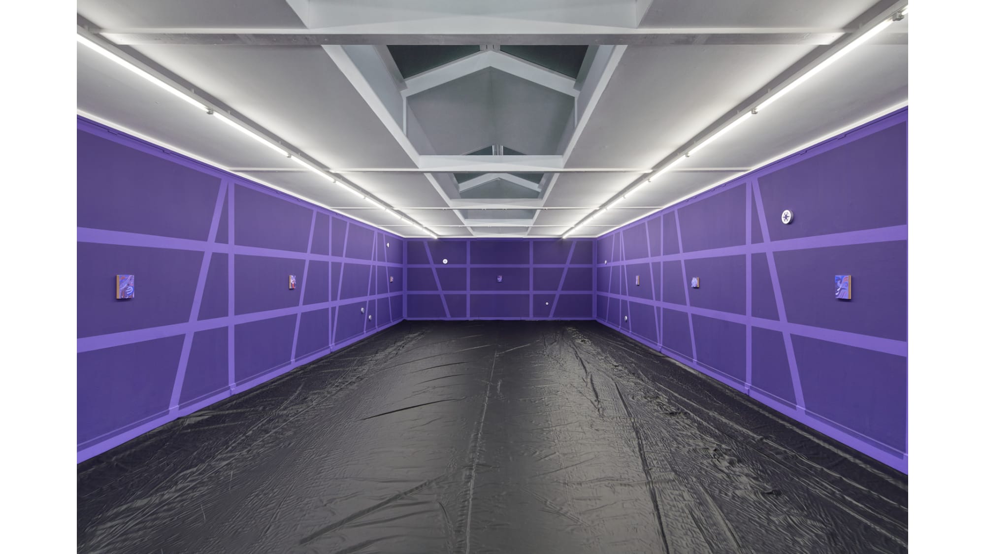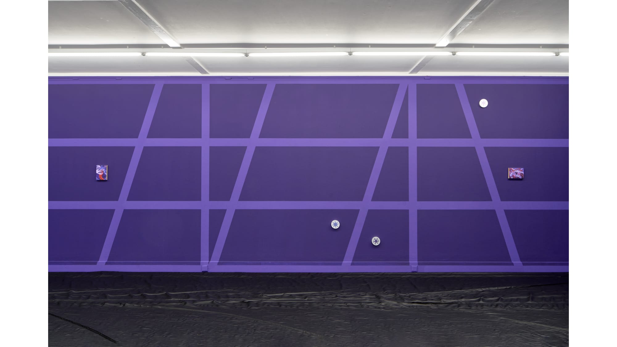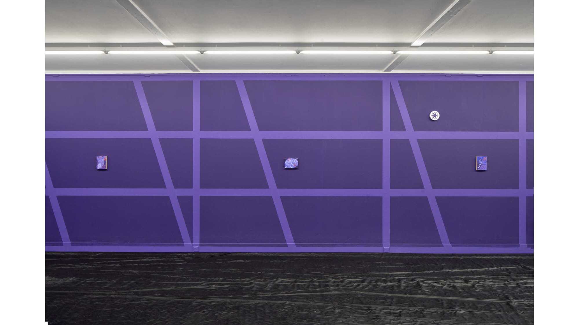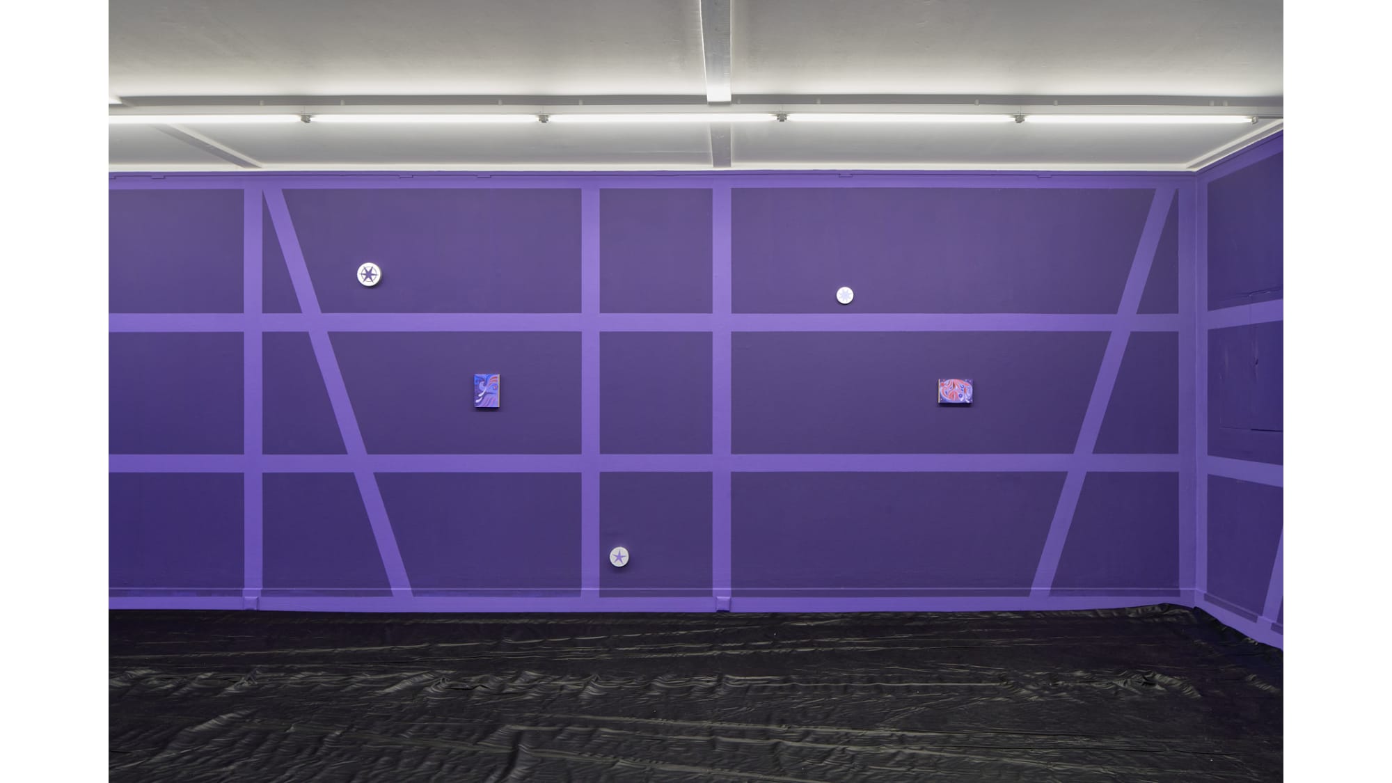 With his exhibition Star that carries your name, Gašper Kunšič gives the interior of the Kunsthalle Willingshausen the outward appearance of a half-timbered façade, through which one seems to look. The spaces between the timbers are violet, like the dark night in which the stars become visible. The German pop song Ein Stern, der deinen Namen trägt (“A star that bears your name”) celebrates these stars and inspired the exhibition’s title. Not only the romantic gesture is addressed here, but also the idea of transformation into a star after death.